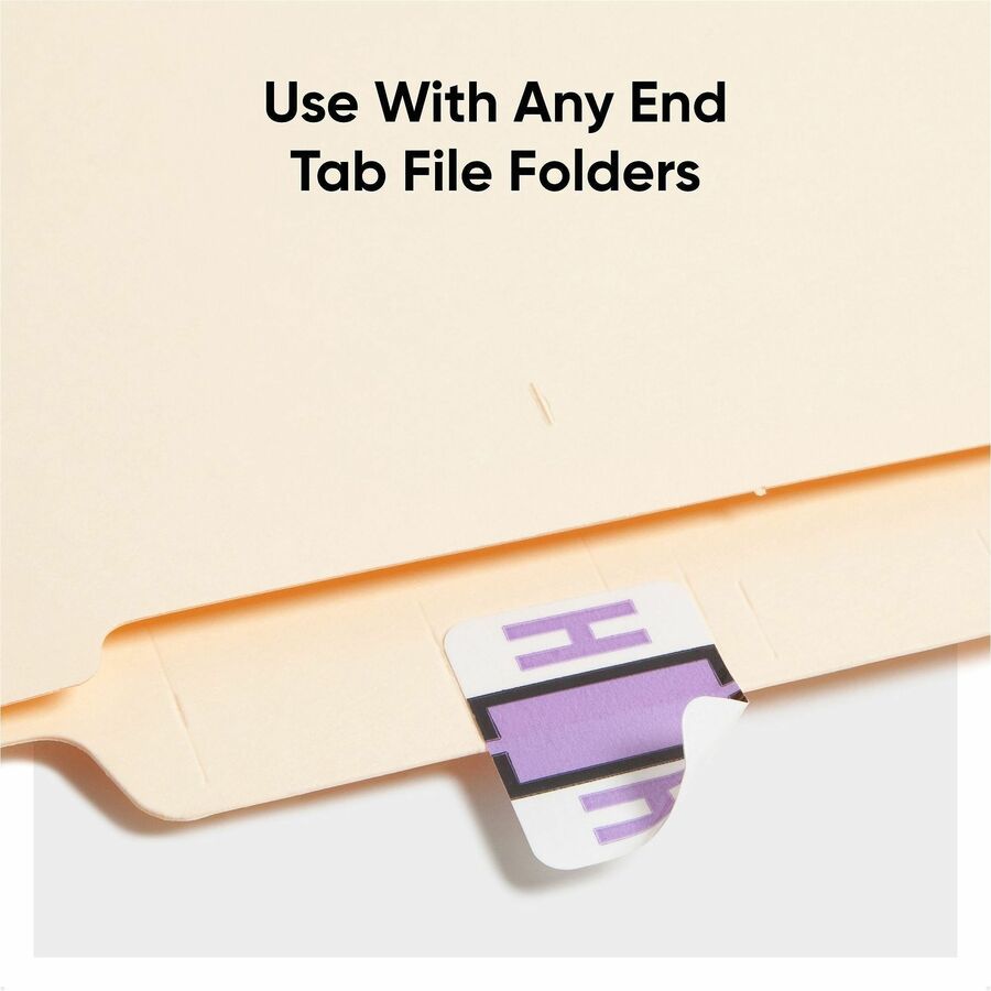 | Marketing Information | Unlike ACCS style labels, these bar-style alphabetical labels are for end-tab folders only. Color-coding labels are tab products compatible. Self-adhesive makes them easy to use. Label measures 1-1/4" wide x 1" high (before folding). |
